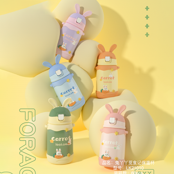 商品名称:500ML可爱兔丫丫觅食记保温杯304不锈钢儿童吸管杯