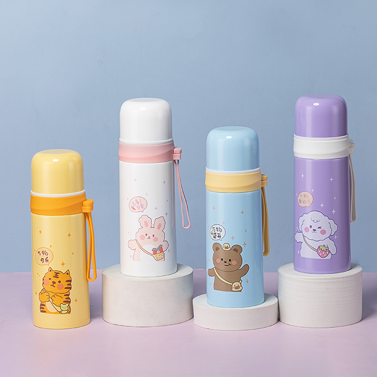 550ML卡通儿童背带吸管塑料杯弹跳盖宝宝学饮杯子