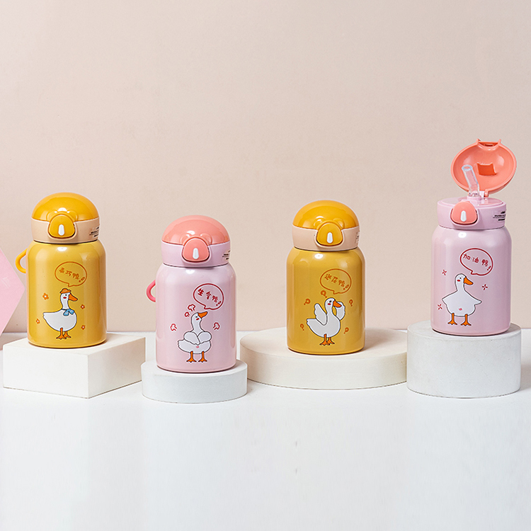 350ML笨笨熊吸管保温杯304不锈钢小清新弹跳盖水杯