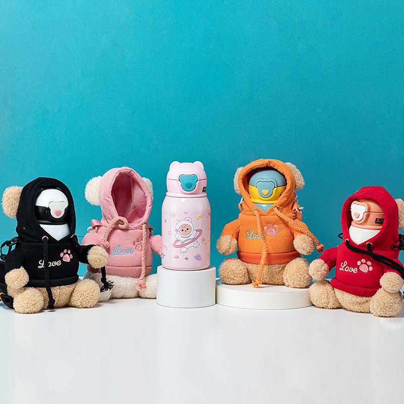 450ML卫衣小熊单盖儿童保温杯316不锈钢可爱吸管杯