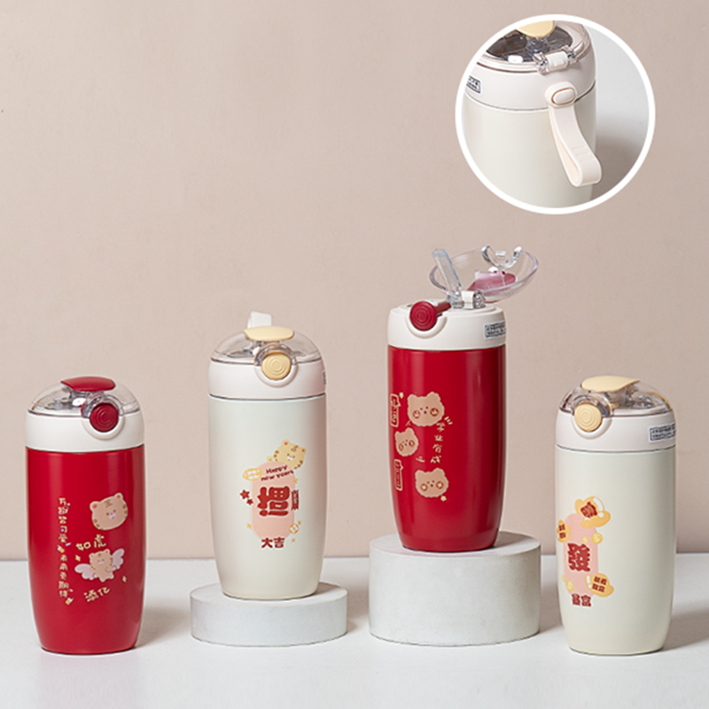 商品名称:450ML新年系列保温杯304不锈钢弹跳盖便携提手杯