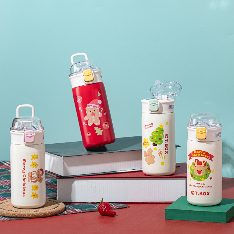 350ML圣诞系列保温杯304不锈钢弹跳盖便携随手杯