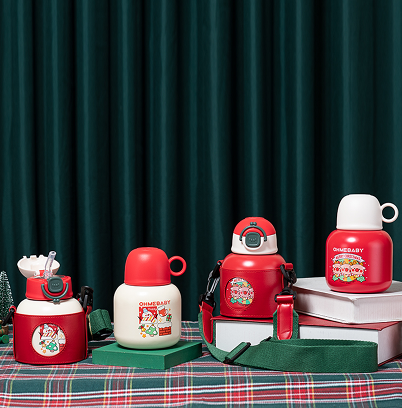 480ML卡通圣诞款背带保温杯316不锈钢弹跳盖大肚杯