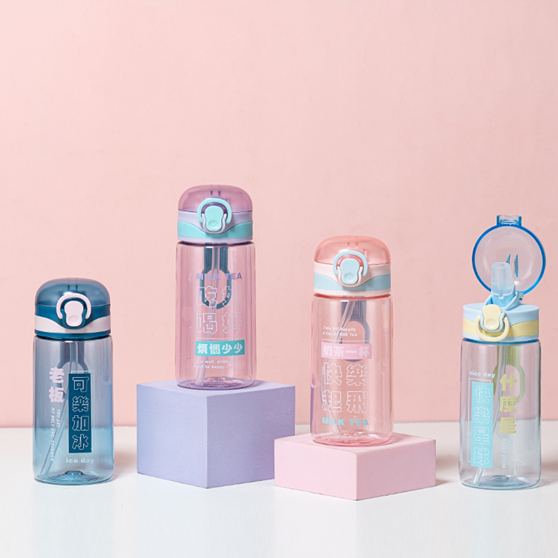 450ML创意文字弹盖塑料杯学生便携户外运动吸管水杯