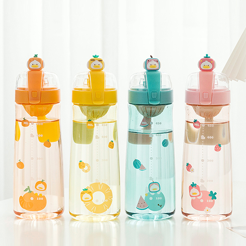 550ML卡通公仔果鸭鸭塑料杯可爱少女心便携弹盖水杯