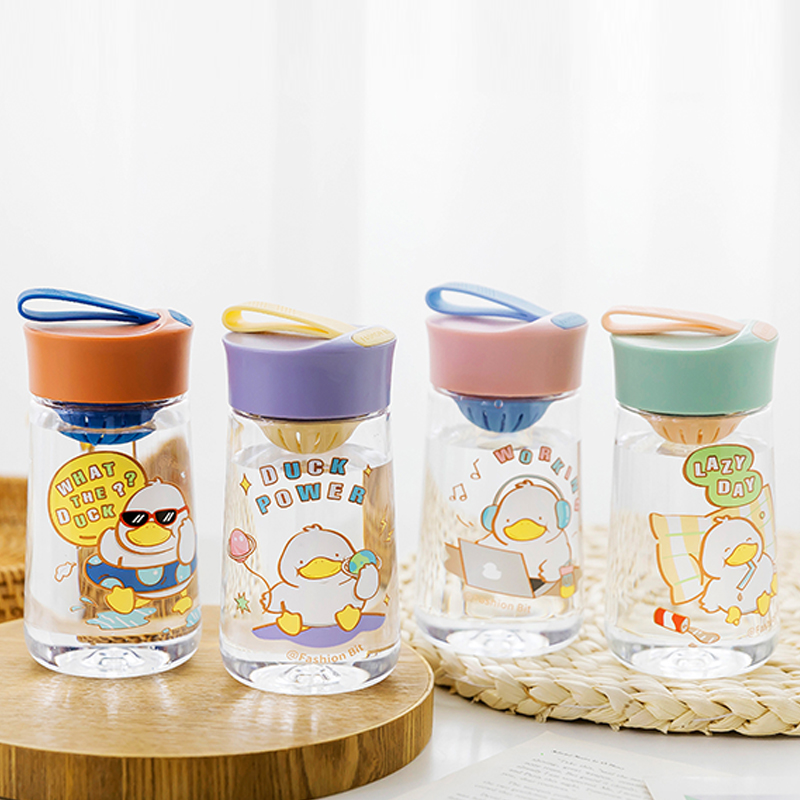 340ML鸭鸭日常塑料杯简约清新带茶隔学生便携随手杯