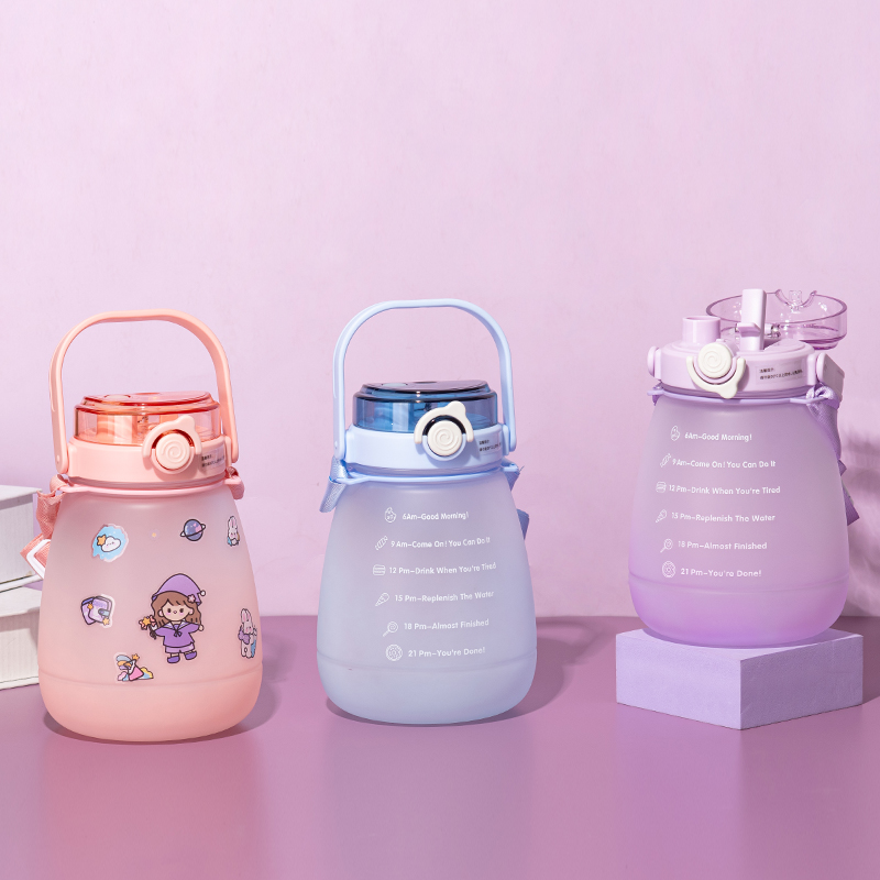 商品名称:1300ML渐变色双饮大肚塑料杯大容量弹跳盖水杯(OPP袋)