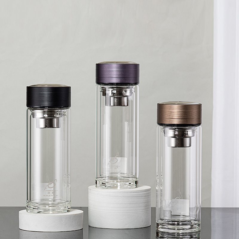 300ML简约商务玻璃杯男士双层泡茶水杯办公礼品杯子