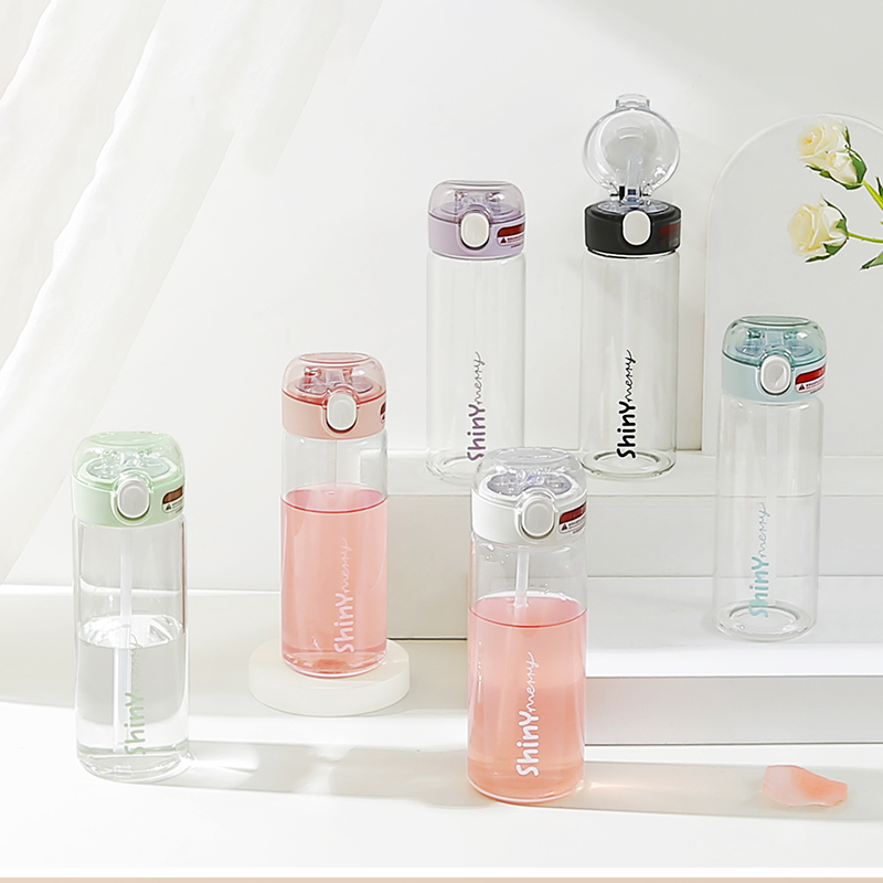 420ML闪闪生活吸管玻璃杯简约ins风夏季便携随手杯