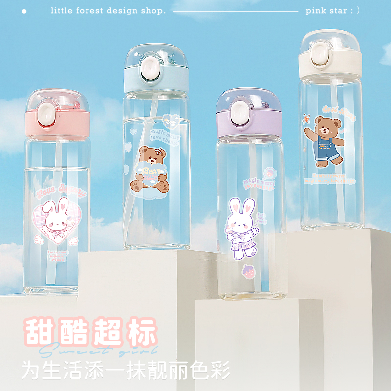 420ML甜酷超标吸管玻璃杯DIY可爱个性水杯赠送贴纸