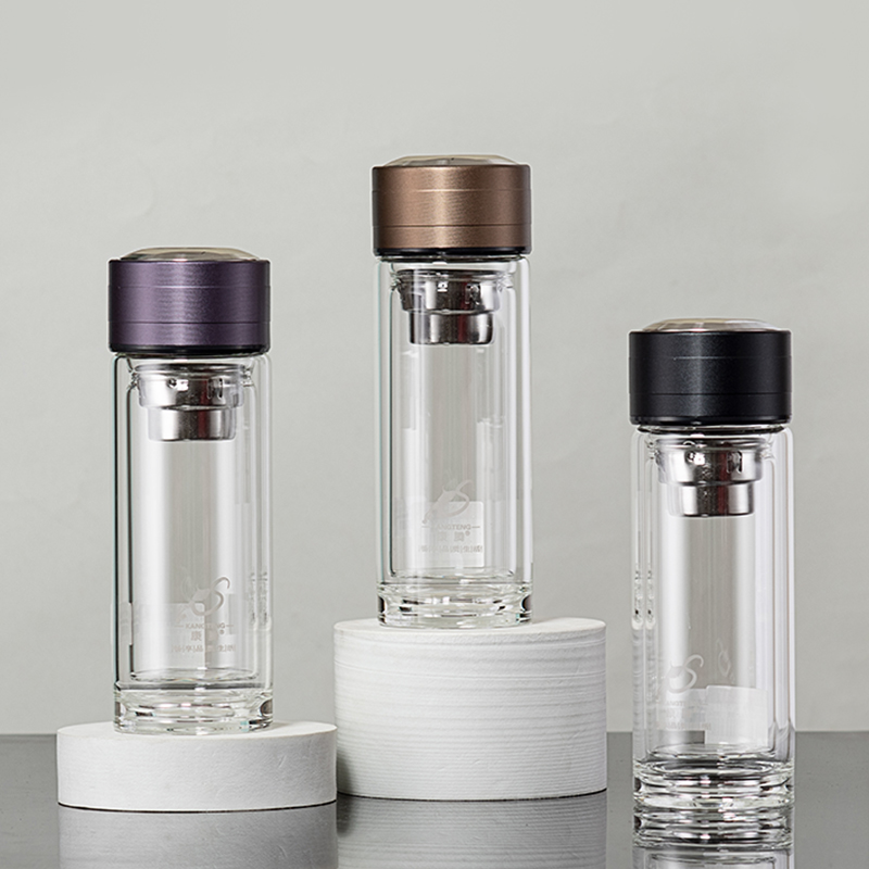 300ML茶艺玻璃杯简约商务男士茶水分离双层泡茶水杯