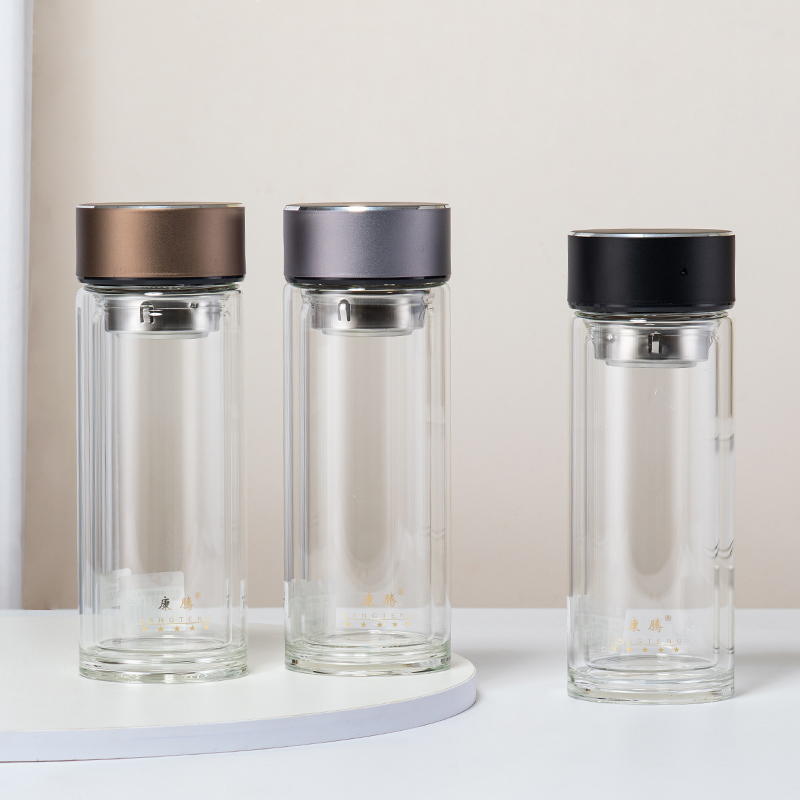 300ML茶艺玻璃杯简约商务男士茶水分离双层泡茶水杯