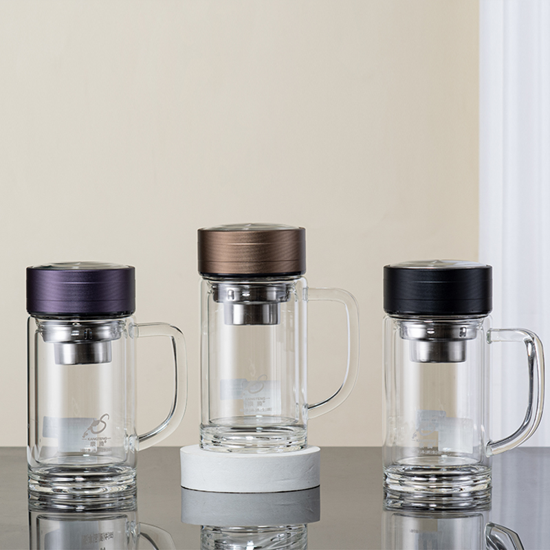 360ML简约商务玻璃杯男士双层泡茶水杯办公礼品杯子