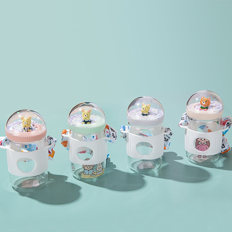 550ML卡通儿童背带吸管塑料杯弹跳盖宝宝学饮杯子