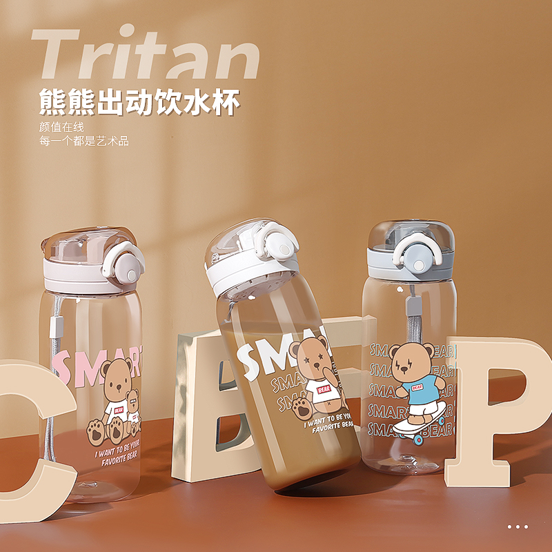600ML熊熊出动塑料杯可爱卡通简约清新水杯(tritan)