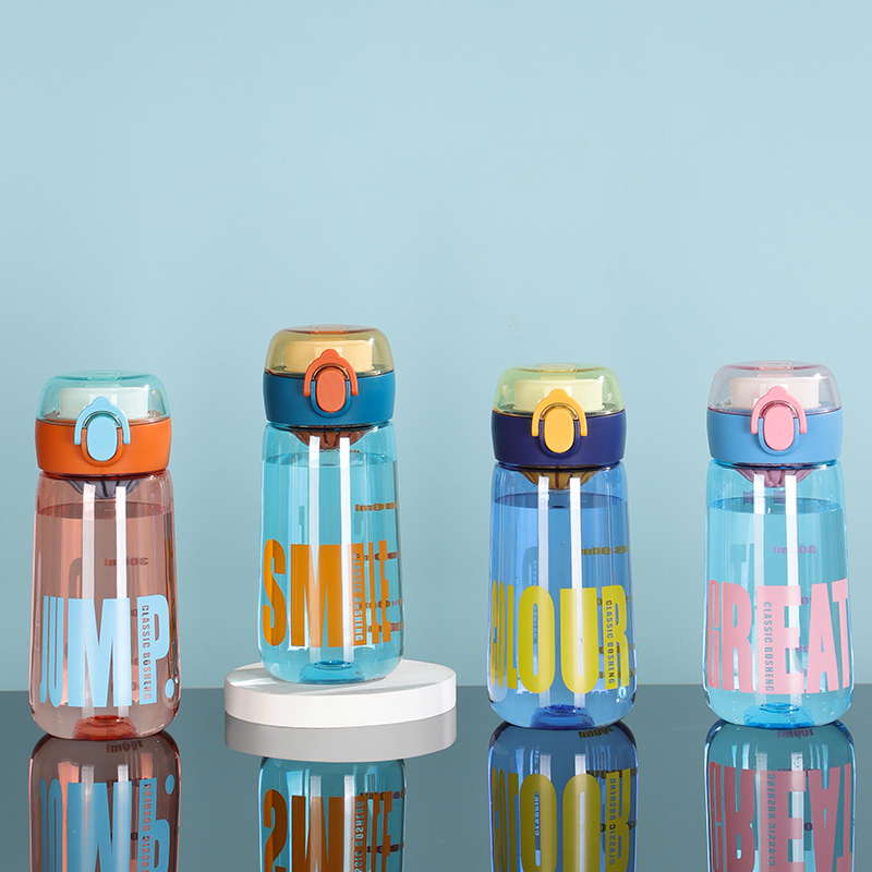 550ML卡通儿童背带吸管塑料杯弹跳盖宝宝学饮杯子
