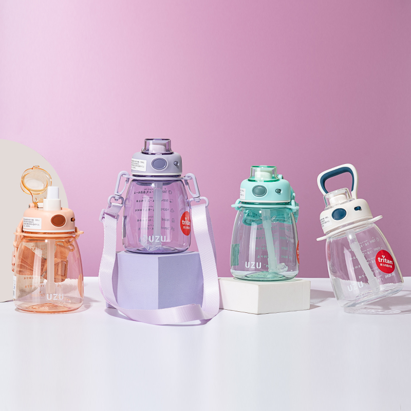 700ML UZU麦萌小肚塑料杯tritan带吸管弹跳盖水杯