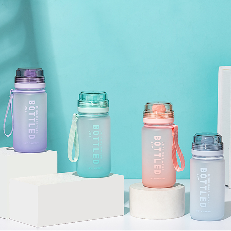 商品名称:400ML亿本简拾太空塑料杯渐变色磨砂手提杯子(OPP袋)
