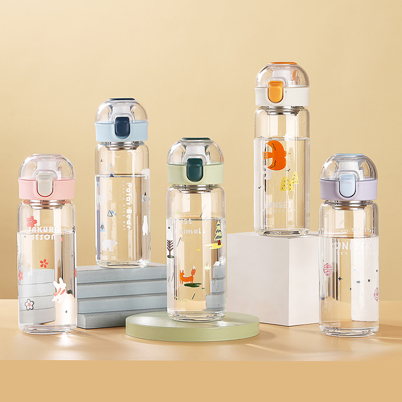 300ML卡通动物布套玻璃杯创意潮语便携水杯户外运动杯子