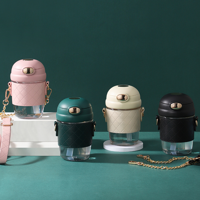380ML果冻潮杯塑料杯弹跳盖背带便携随手杯 (彩盒)