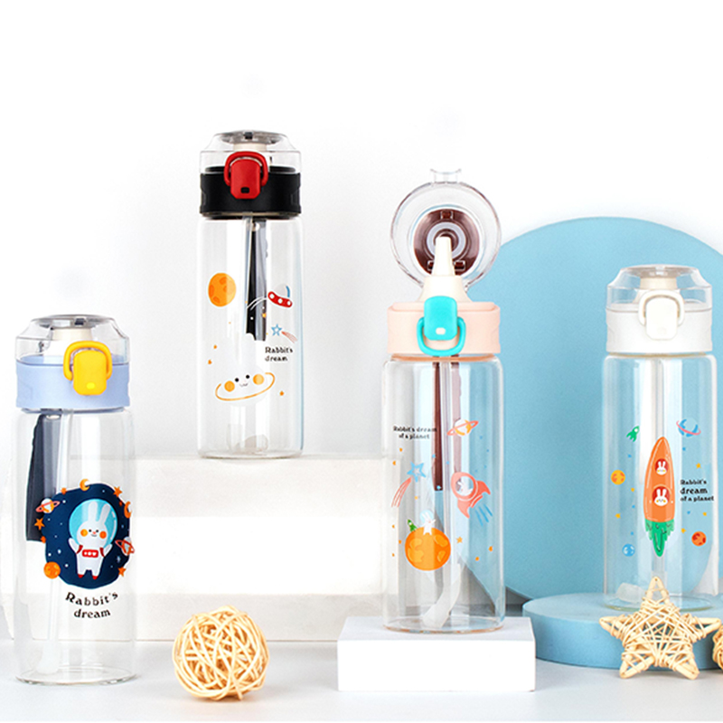 420ML兔兔星空弹跳吸管玻璃杯学生小清新可爱便携水杯