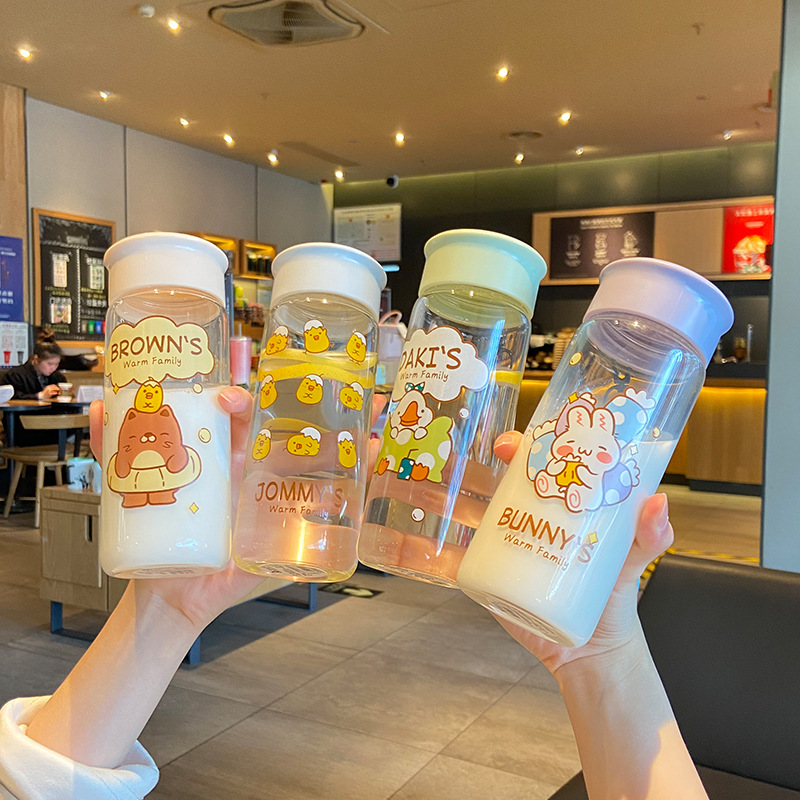 400ML萌宠一家玻璃杯可爱少女心公仔手绳便携随手杯