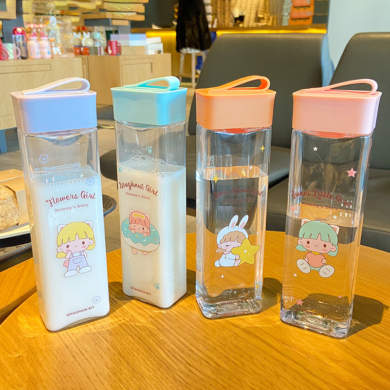 400MLkemmy系列方形塑料杯可爱少女心学生水杯子