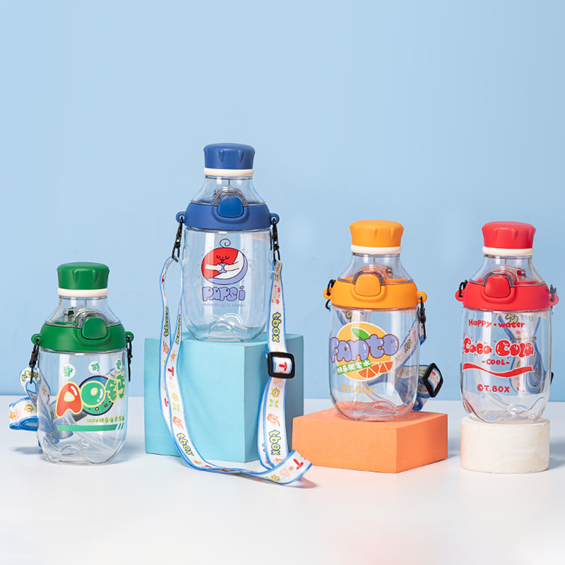 550ML亿本蘑菇点点云端儿童吸管水壶背带塑料杯