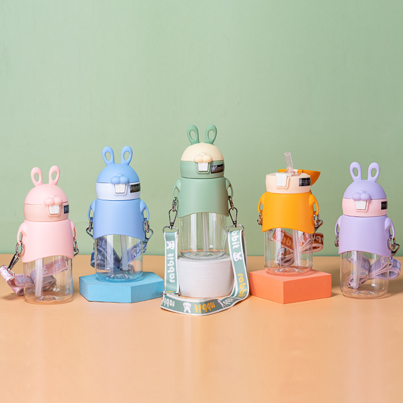 720ML卡通软萌动物吸管背带塑料杯可爱水杯(彩盒)