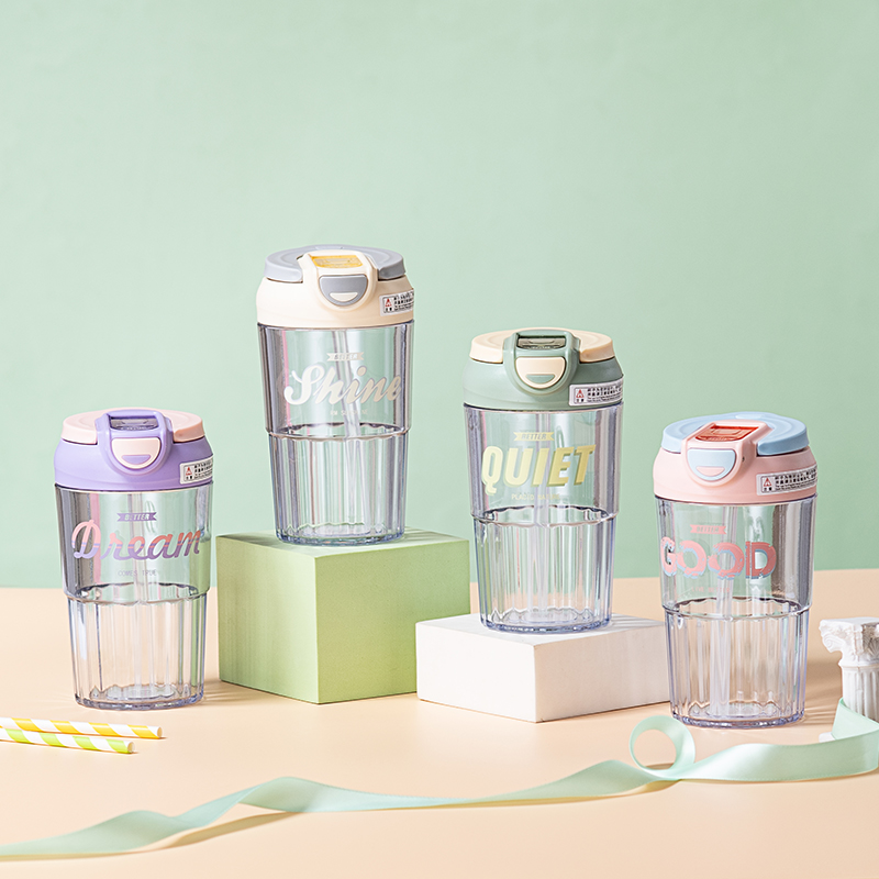 480ML北欧风双饮口塑料杯男女士商务办公吸管杯(彩盒)