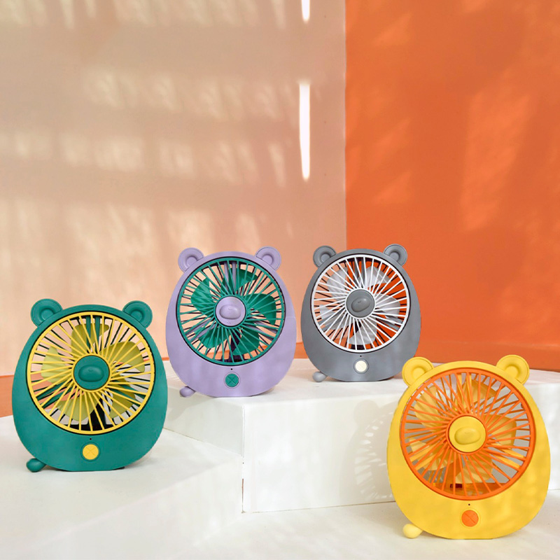 卡通小熊风扇USB充电迷你手持便携式带灯小风扇