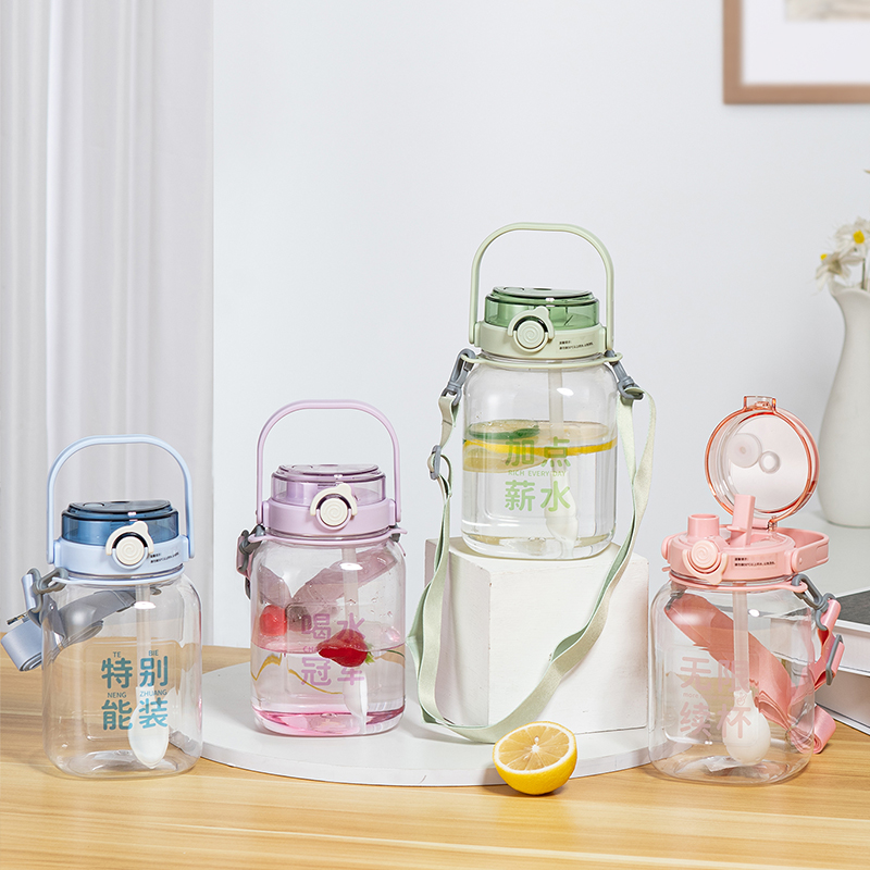 商品名称:1300ML方形双饮塑料杯大容量弹跳盖水杯(OPP袋)