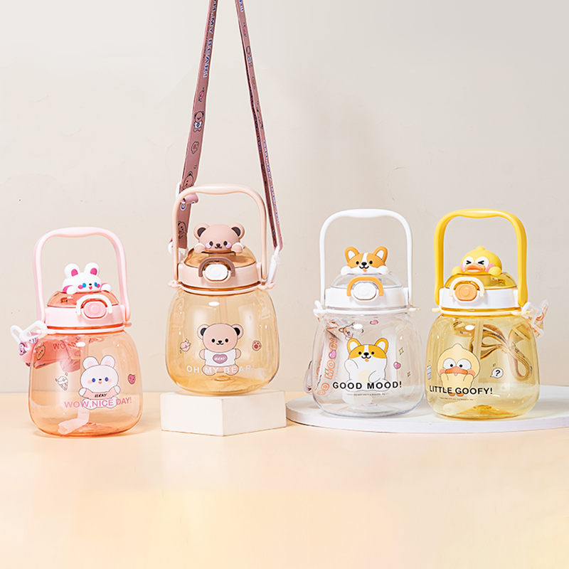 1310ML可爱抱抱动物大肚塑料杯高颜值吸管水杯(彩盒)