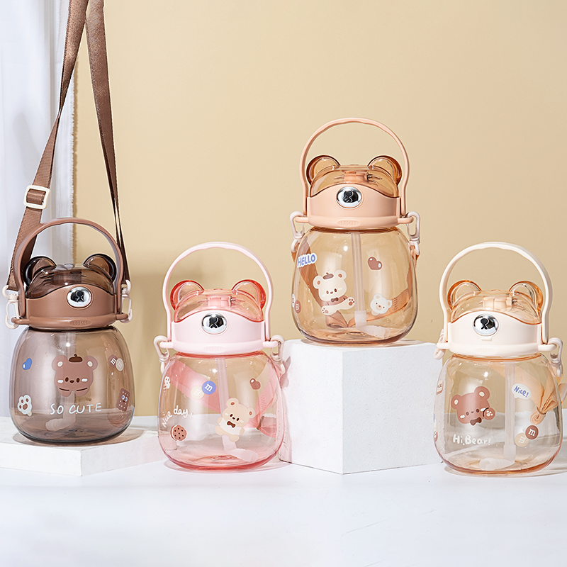 1300ML卡通款小熊日记大肚塑料杯高颜值弹跳盖水杯