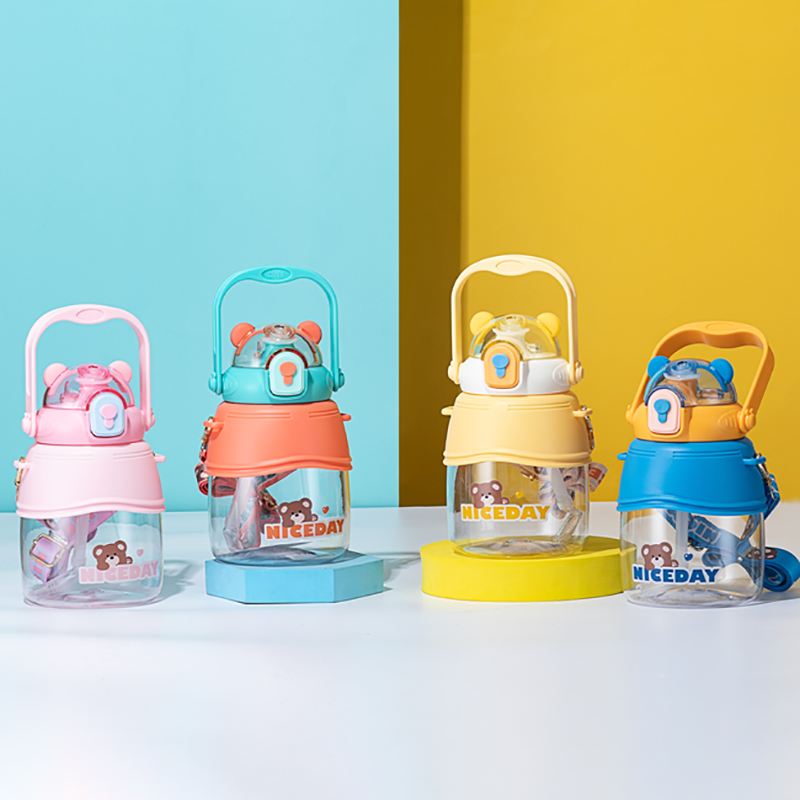 1300ML童真熊背带大肚塑料杯网红大容量水杯(OPP袋)