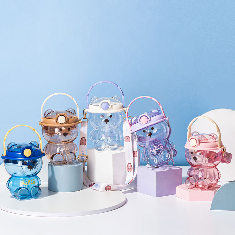 商品名称:1000ML哈喽熊吸管塑料杯大容量高颜值网红水壶(OPP袋)