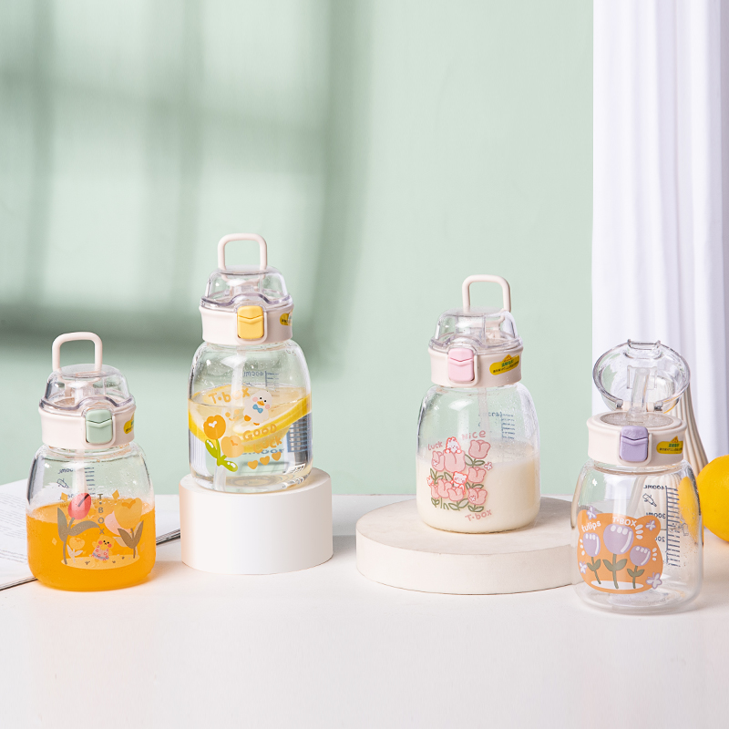 商品名称:420ML春日郁金香系列玻璃杯小清新可爱学生便携水杯