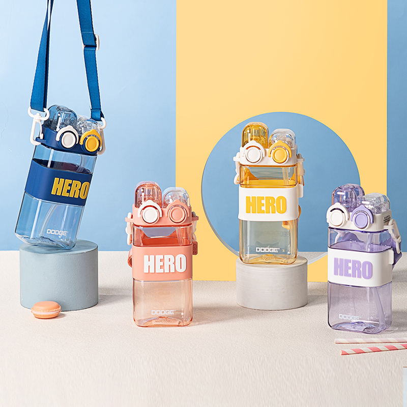 商品名称:570ML道奇偶像双饮口吸管塑料杯便携背带水杯(TRITAN)
