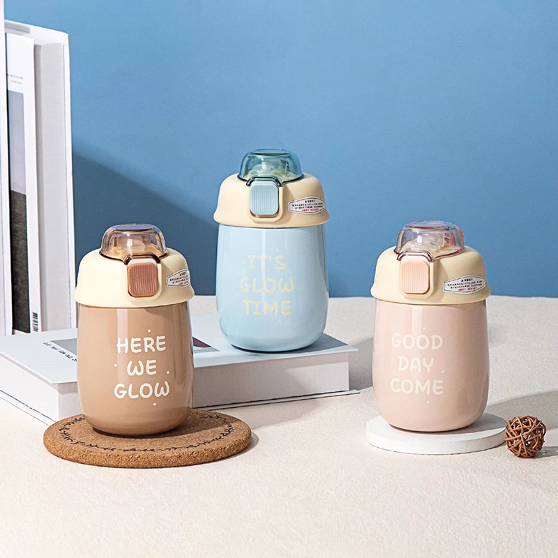 380ml唤醒时光弹盖保温杯304不锈钢简约时尚杯子送贴纸