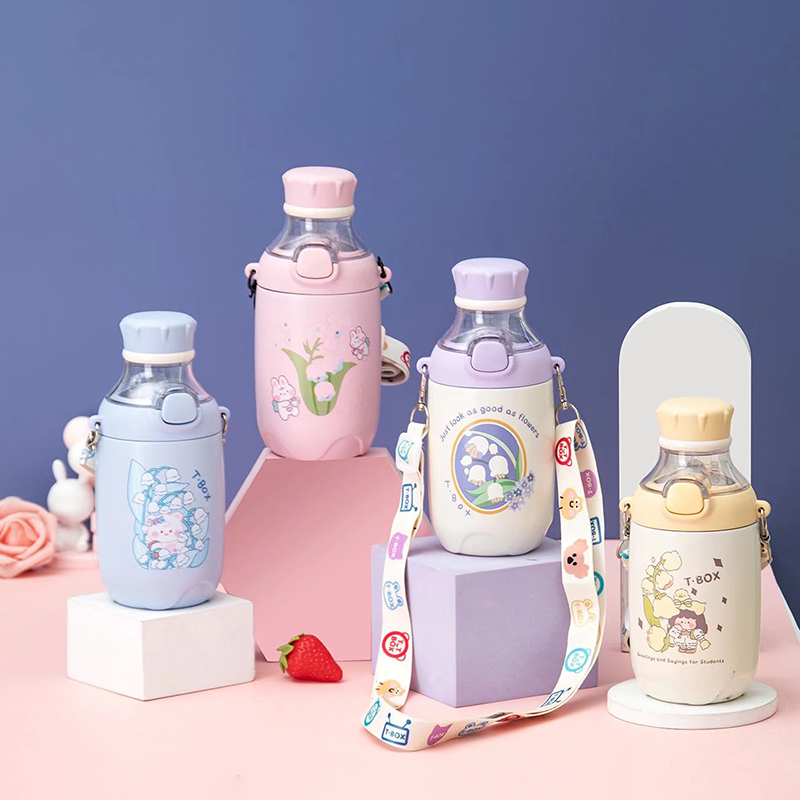 商品名称:400ML浪漫铃兰花可乐瓶保温杯304不锈钢弹跳盖吸管水杯