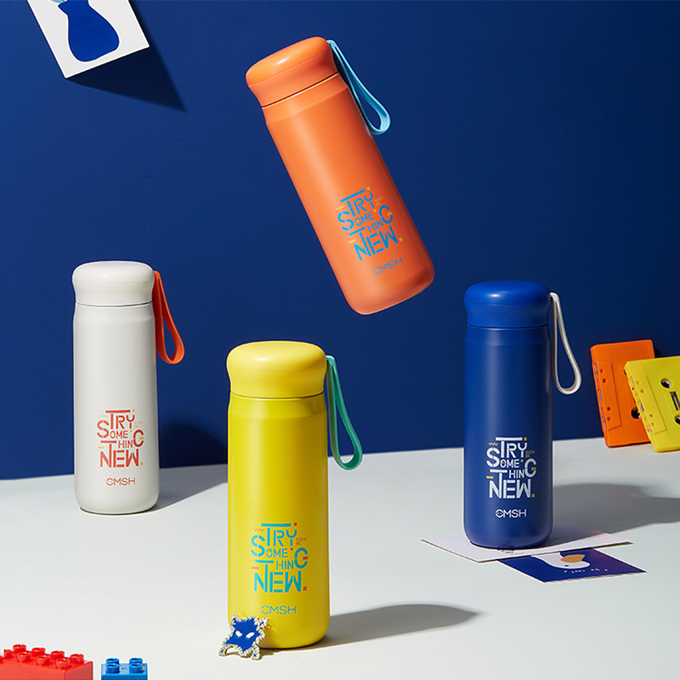 350ML线条动物子弹头保温杯 卡通户外手提水杯
