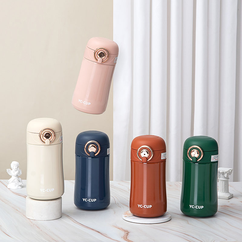 400ML简约时尚英伦米豆豆吸管弹跳杯304不锈钢保温杯