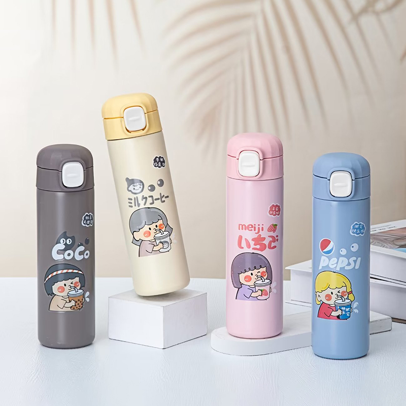 450ML卡通奶茶弹跳保温杯304不锈钢清新可爱水杯