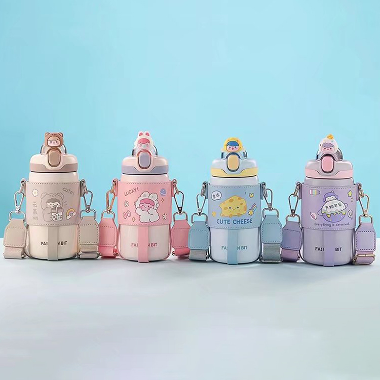 480ML萌酱零食团保温杯可爱公仔背带水杯弹盖吸管杯