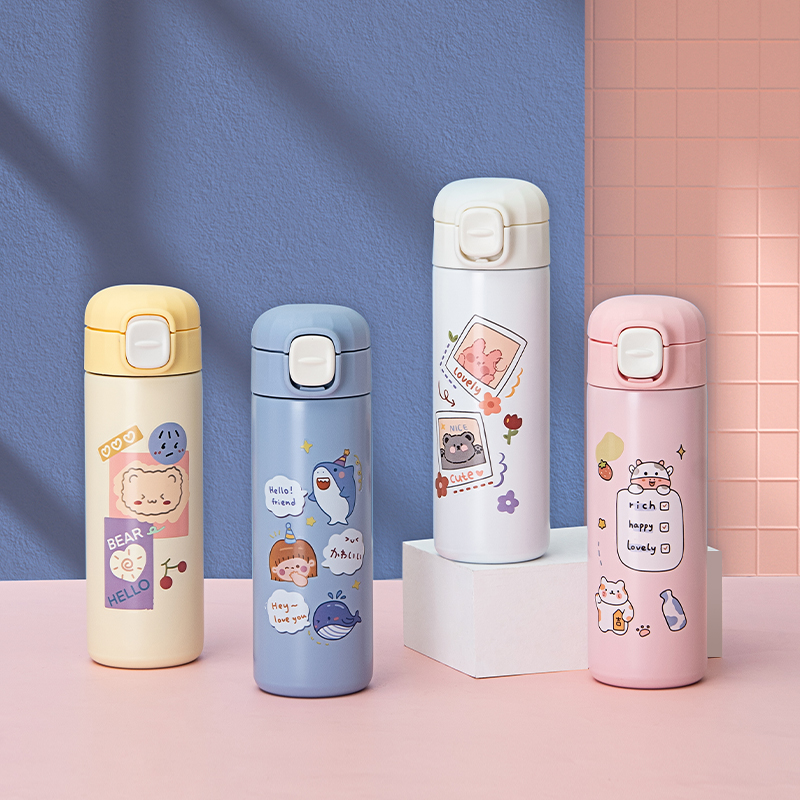 350ML创意hello弹盖保温杯不锈钢真空双层保温杯子