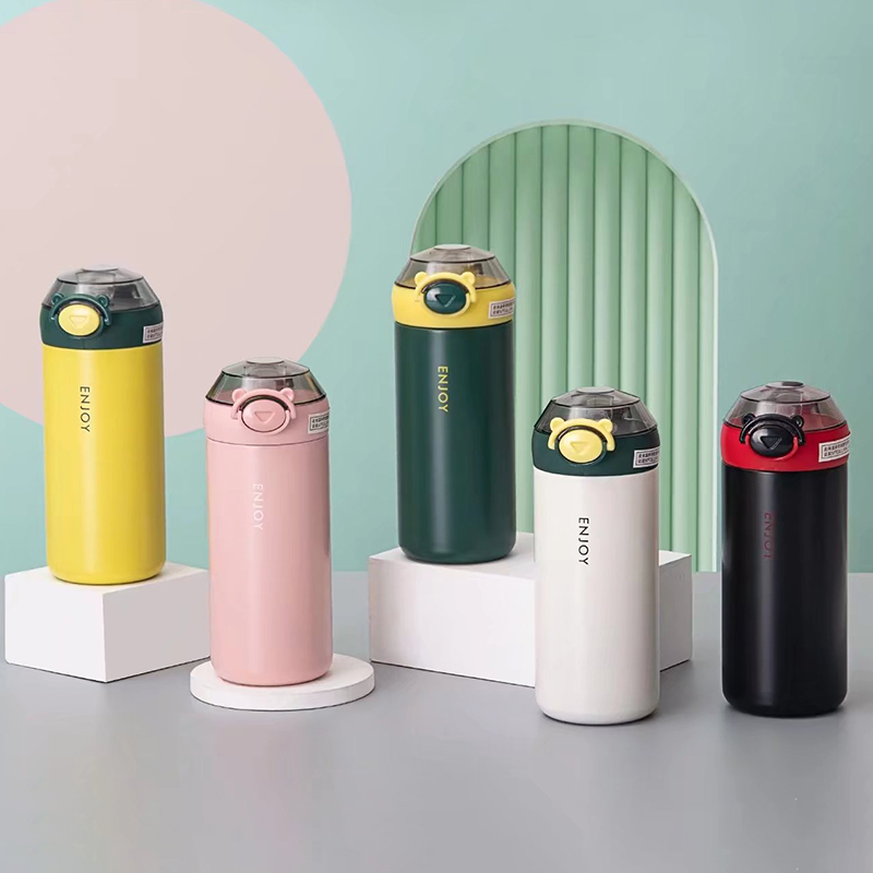350ML小蒙包吸管弹跳萌熊保温杯304不锈钢简约水杯