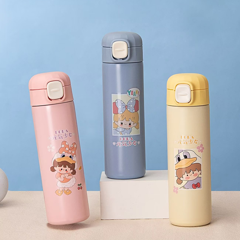 450ML元气少女便携弹跳保温杯304不锈钢卡通可爱杯子
