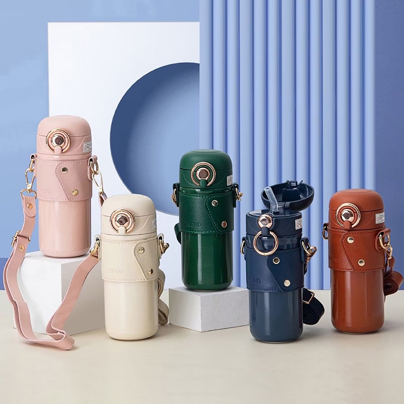 480ML皮套米豆豆吸管弹跳杯304不锈钢男女士商务水杯