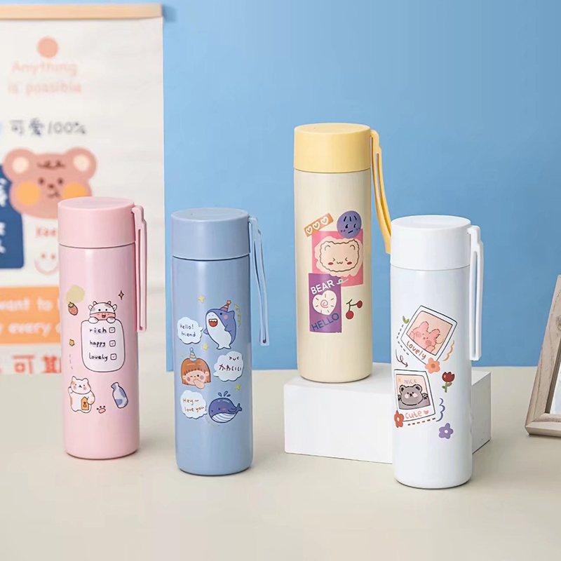 350ML线条动物子弹头保温杯 卡通户外手提水杯