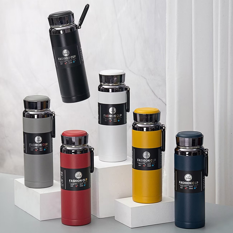 1000ML喷塑提手保温杯304不锈钢大容量简约运动水杯